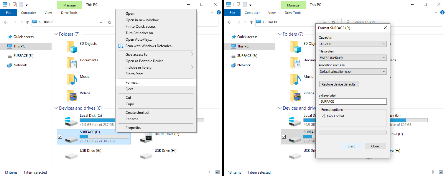 Follow the instructions one the Format USB Drive page.